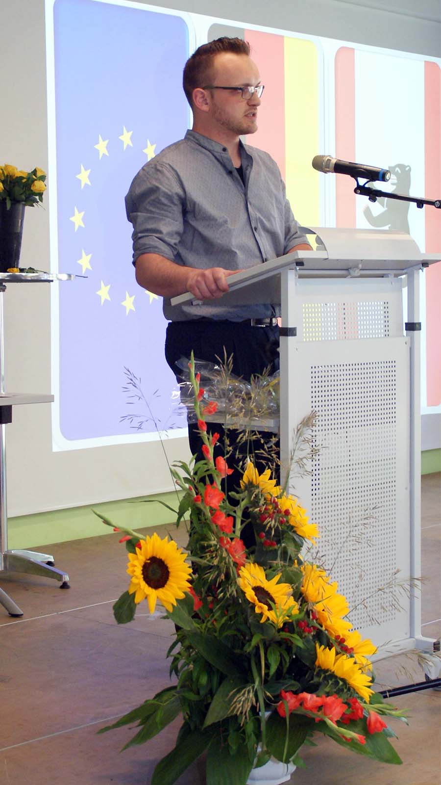 Marcel Behrendt ließ namens der Absolventen die beiden Jahre des Studiums Revue passieren und dankte den Lehrerinnen, Lehrern, Dozentinnen und Dozenten für ihr Engagement in einer Zeit voller Herausforderungen in den verschiedenen Bereichen der Weiterbildung. Ein musikalisches Intermezzo von Moustafa Khalife, Abiturient des Beruflichen Gymnasiums, unterstrich den feierlichen Charakter.