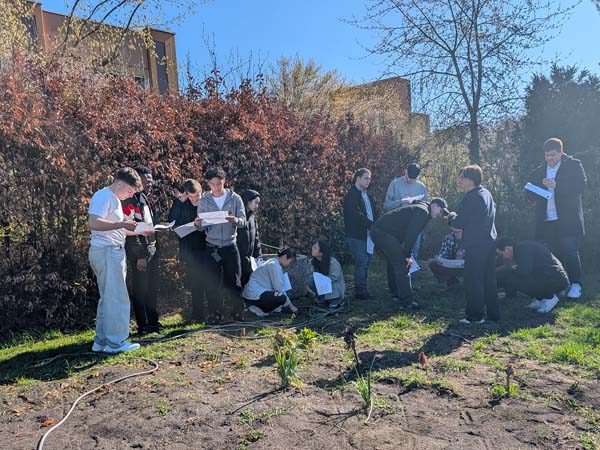 Um nicht nur theoretisches, sondern auch praktisches Wissen zu vermitteln, haben wir einen Besuch des Schulgartens eingeplant. Hier sollten die Lernenden eine Bodenprobe nehmen, sie untersuchen und auf ihre Qualität bewerten. Interessant war zu sehen, wie sich die Bodenqualität zwischen April und Juni sichtbar verbessert hatte, da wetterbedingt erst nach dem 4. April 2025 natürlicher Dünger im Schulgarten verteilt werden konnte. Zudem zeigte die Bewertung einen Zuwachs an Kleinstlebewesen.