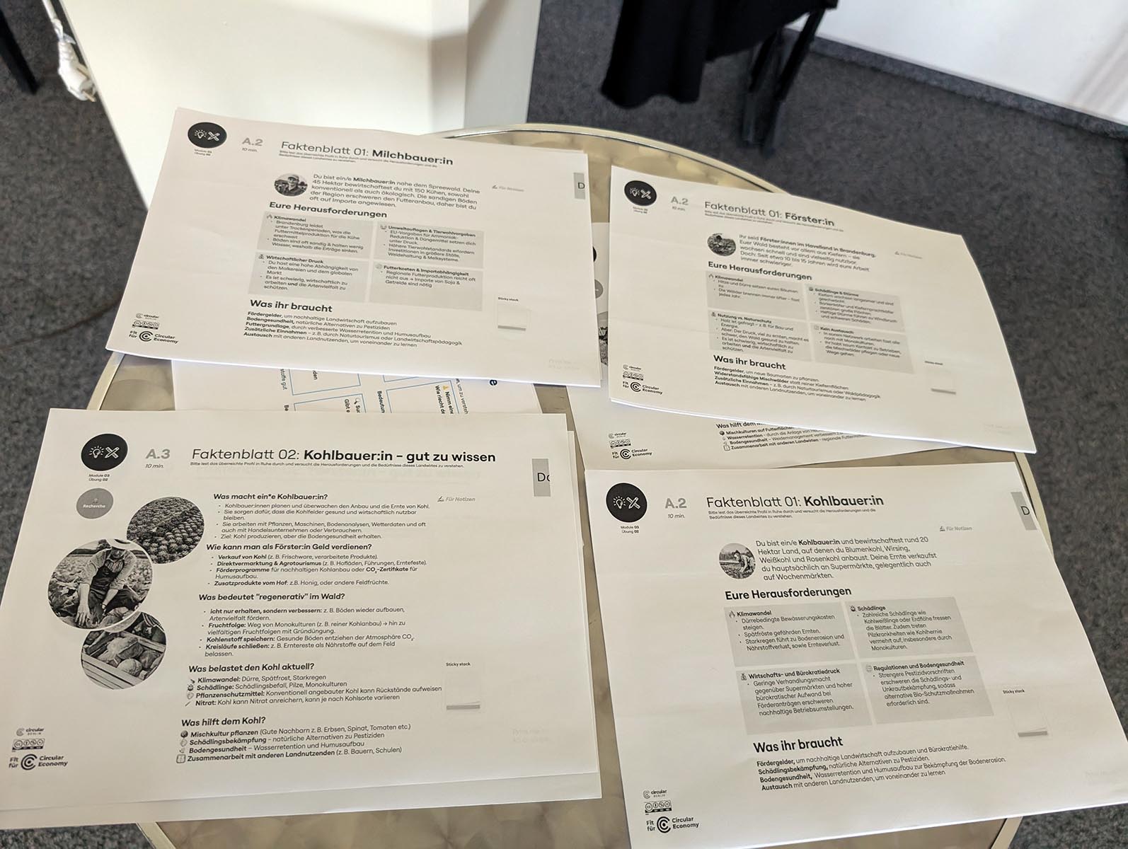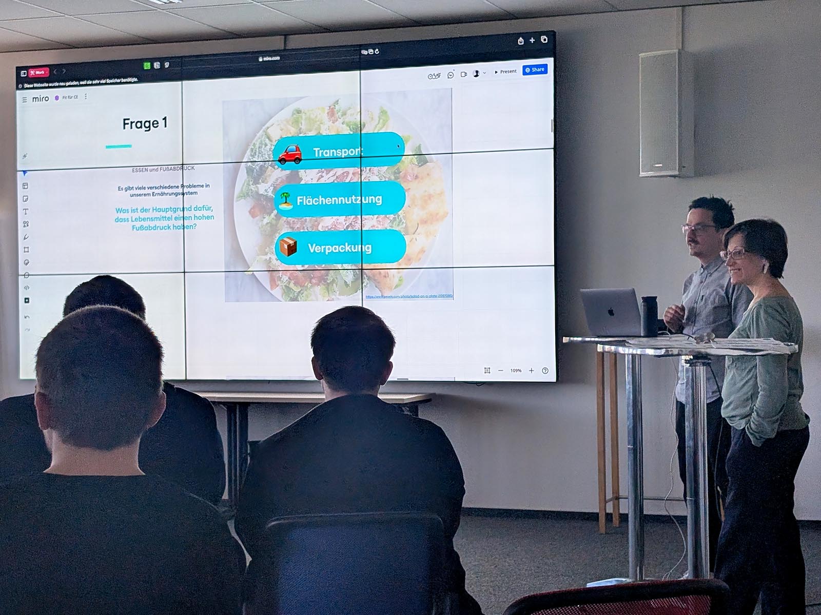 Nach weiterem Input durch externe Experten im Videochat sollten die Lernenden ihr Wissen in einer Gruppenarbeit umsetzen. Drei Arbeitsgruppen wurden gebildet und bekamen jeweils unterschiedliche Rollen verteilt: Bei den Falets ging es im speziellen um einen Milchbauer, Förster und Kohlbauer, welche zusammen agieren und miteinander in Verhandlungen für eine regenerative Kreislaufwirtschaft gehen sollten. Bei den Konditor/-innen waren es eine Industrielle, eine traditionelle und eine Zero-Waste-Konditorei.