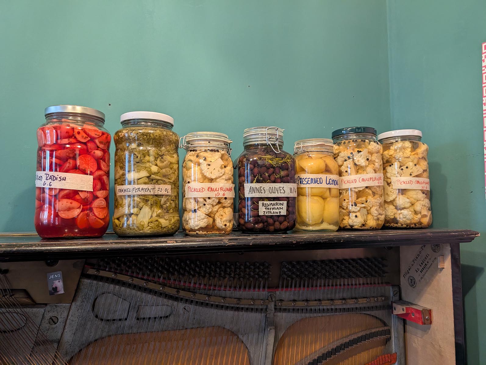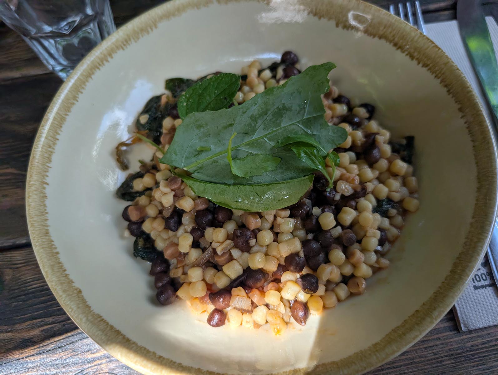 Das Roots Radicals ist eine Kantine, welche sogenannte „Misfits“, also Gemüse und Obst mit Makeln verarbeitet und dabei so viel verwertet, wie irgendwie möglich (Lebensmittel-Upcycling). So wird zum Beispiel selbst die Schale von Knoblauch getrocknet und zu einem leckeren Gewürz upgecycelt.