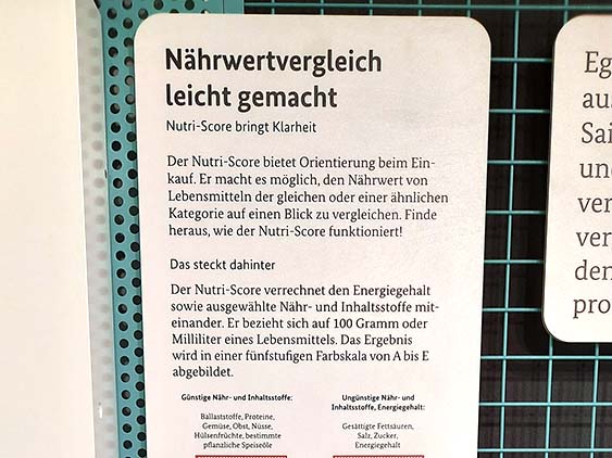Durch die Anmeldung ist die Ausstellung nicht überlaufen, so dass man sich auch Zeit nehmen kann, um einzelne Inhalte genauer zu lesen. Es gab bei dem Besuch auch die Gelegenheit, Broschüren mitzunehmen, wie z. B. einen Obst-/Gemüsekalender für die Handtasche.