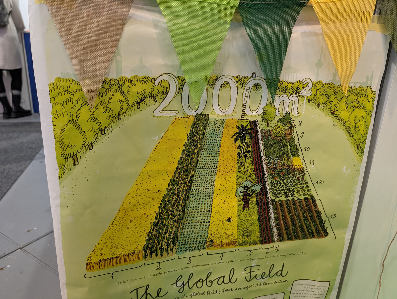 Nachdem am Vormittag noch pädagogischer Input in der Schule auf dem Programm gestanden hatte, machten wir uns mittags gemeinsam auf den Weg. Nach einer kurzen Verschnaufpause in der Messehalle startete direkt der theoretische Teil des Workshops: Warum trägt der Verein eigentlich die „2000 m²“ im Namen? Welche Hülsenfrüchte sind uns bereits bekannt und welche Bedeutung haben sie für uns sowie für den gesamten Planeten? Wie viel Ackerfläche und Wasser beansprucht der Anbau verschiedener Rohstoffe tatsächlich? Bei all diesen Fragestellungen konnten unsere Lernenden mit fundiertem Vorwissen glänzen und die Workshop-Leitung sichtlich begeistern.