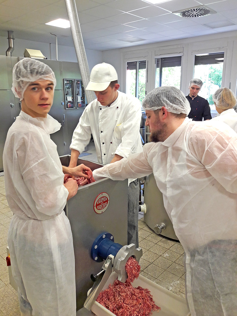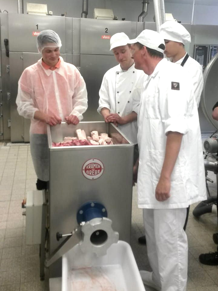 Am 23.05.2018 besuchte eine Klasse angehender Köche/Köchinnen der Brillat-Savarin-Schule (OSZ Gastgewerbe) das Fleischtechnikum an der Emil-Fischer-Schule (OSZ Ernährung und Lebensmitteltechnik). Die Auszubildenden konnten an diesem Tag die Produktionsweise von zwei unterschiedlichen Wurstwaren und den Wurstgruppen Brühwurst und Rohwurst kennenlernen.